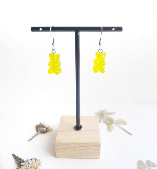 Boucles d'oreilles bonbons nounours jaunes