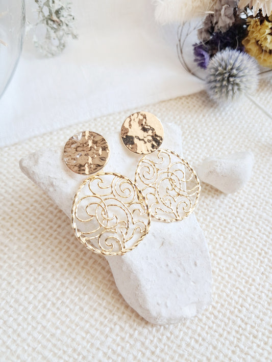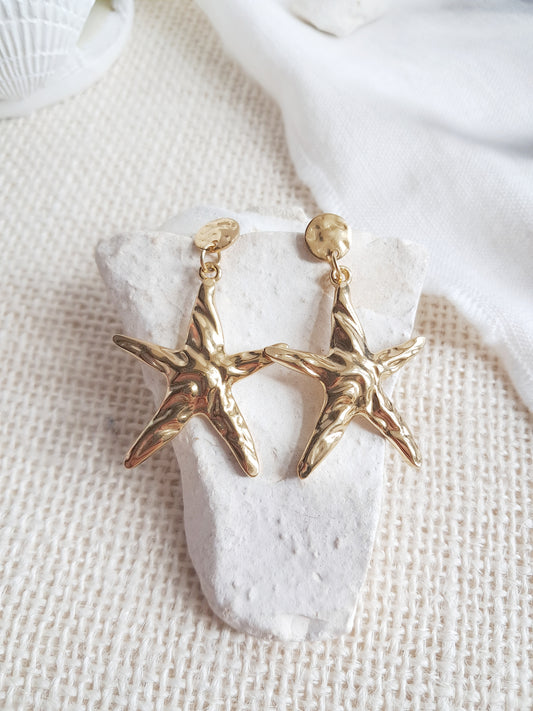 Boucles d'oreilles étoiles de mer texturées en acier inoxydable doré