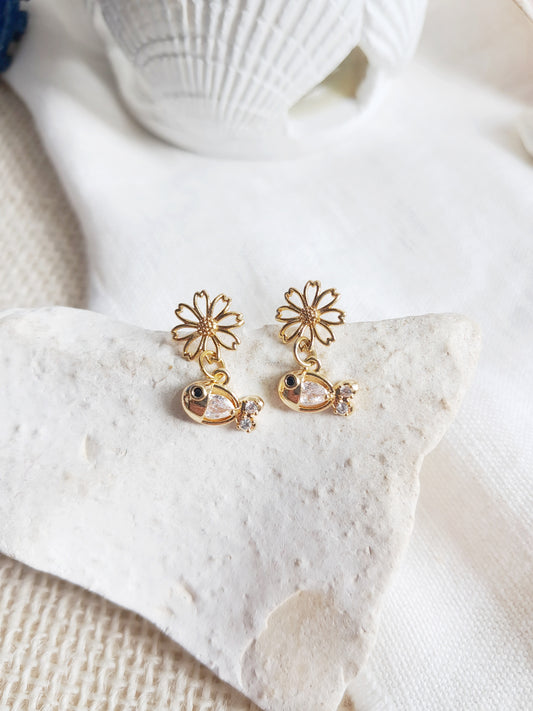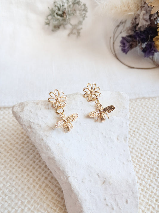 Boucles d'oreilles fleurs de cerisier et abeilles