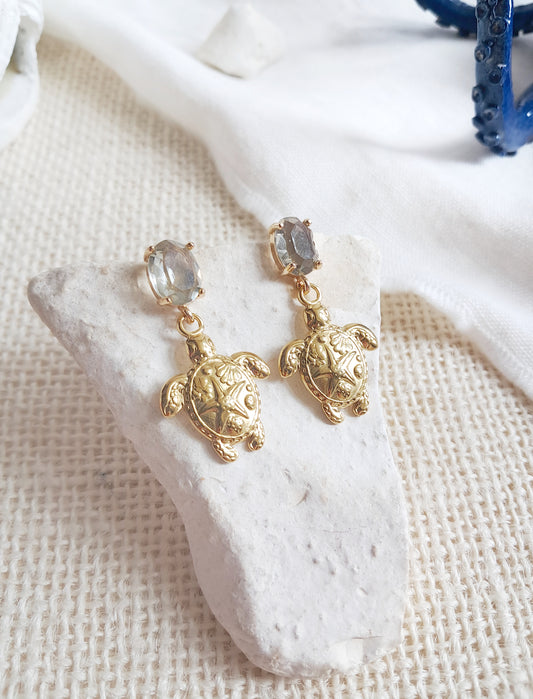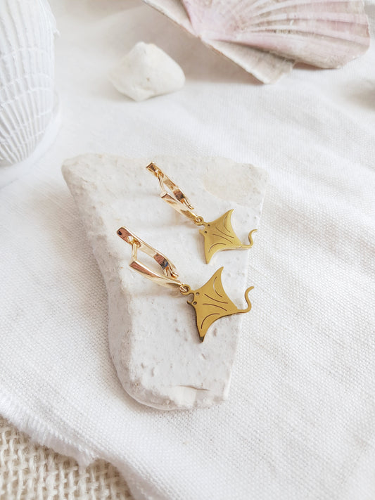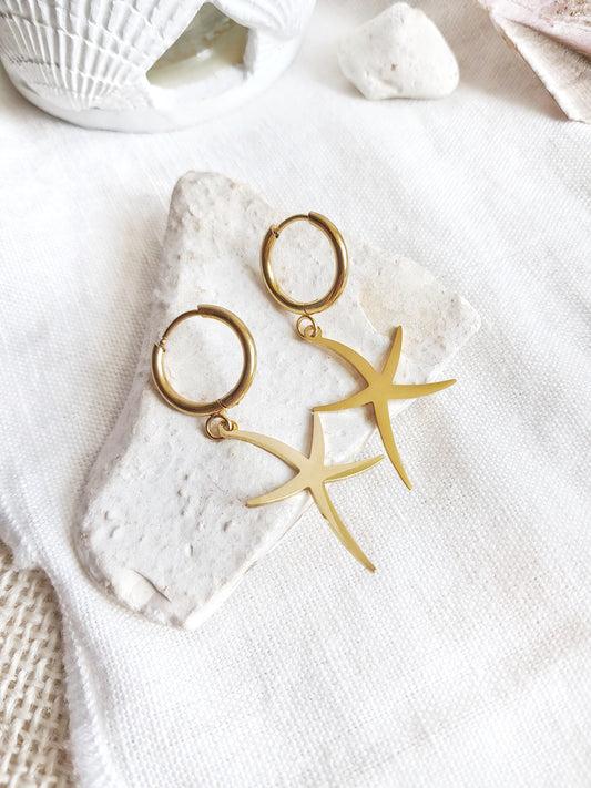 Boucles d'oreilles créoles étoiles de mer en acier inoxydable doré