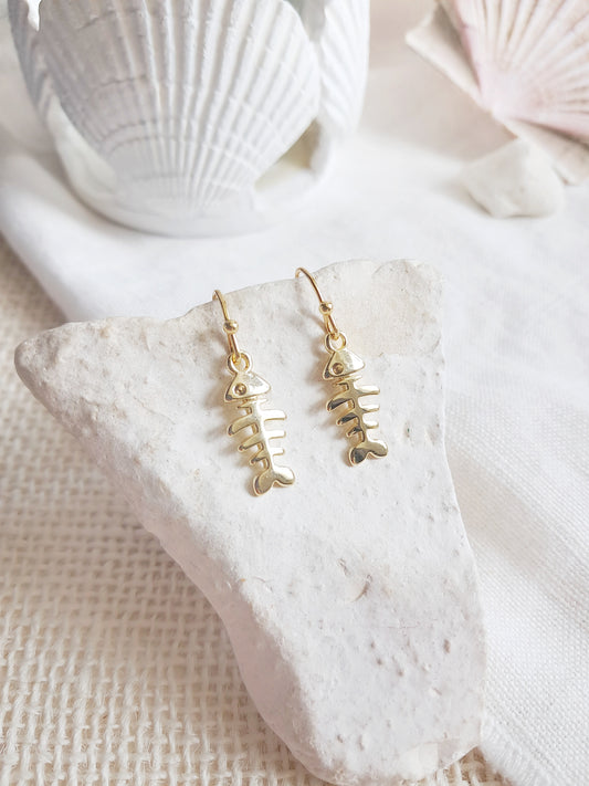 Boucles d'oreilles créoles arêtes de poisson roses en acier inoxydable doré