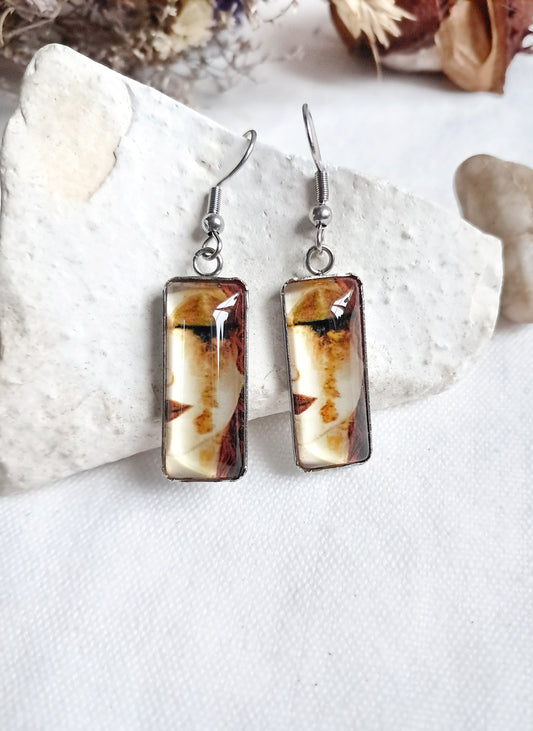 Boucles d'oreilles rectangulaires "La jeune fille à la perle" de Vermeer