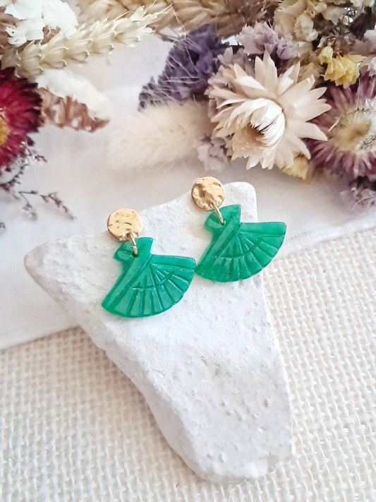 Boucles d'oreilles rectangulaires "La dame à l'éventail" de Gustave Klimt