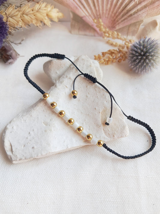 Bracelet shamballa perles en coquillage et acier inoxydable doré
