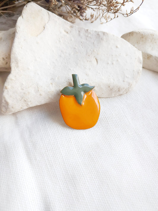 Pin's fruit kaki en laiton et émail