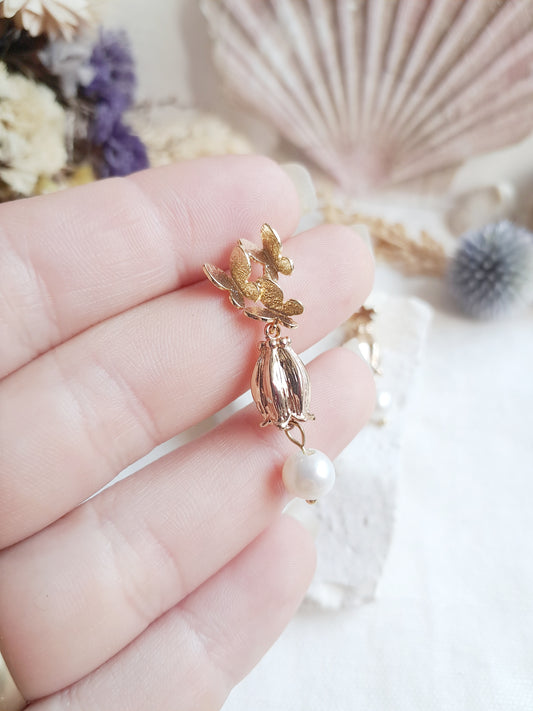 Boucles d'oreilles pendantes papillons et fleur