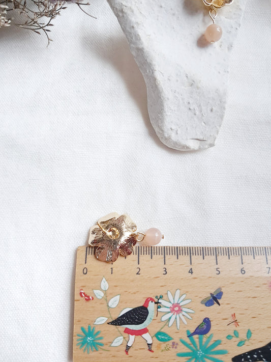 Boucles d'oreilles fleurs de camélia et pierre du soleil