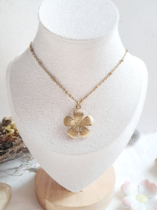 Collier fleur en acier inoxydable doré