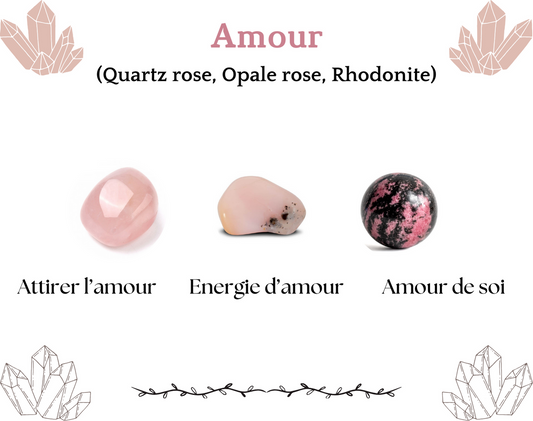 Bracelet lithothérapie "Amour" en Quartz rose, Opale rose et Rhodonite
