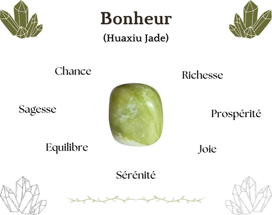Bracelet lithothérapie "Bonheur" en perles de Huaxiu Jade 8mm