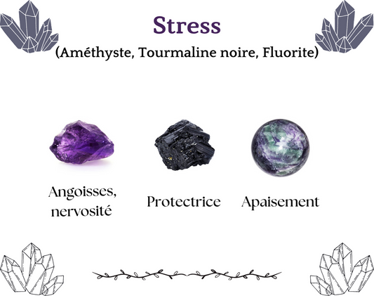 Bracelet lithothérapie "Stress" en Améthyste, Tourmaline noire et Fluorite