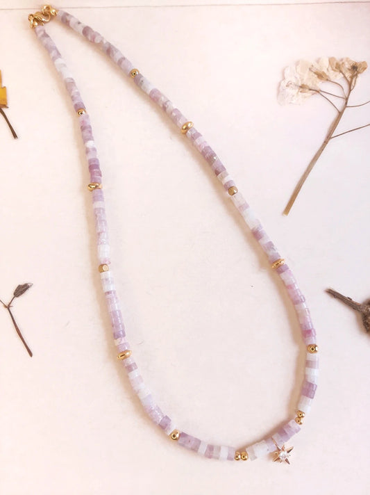 Collier étoile en rondelles de mica, laiton or 24k et acier inoxydable