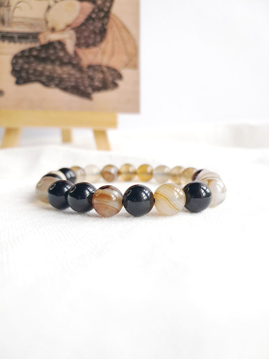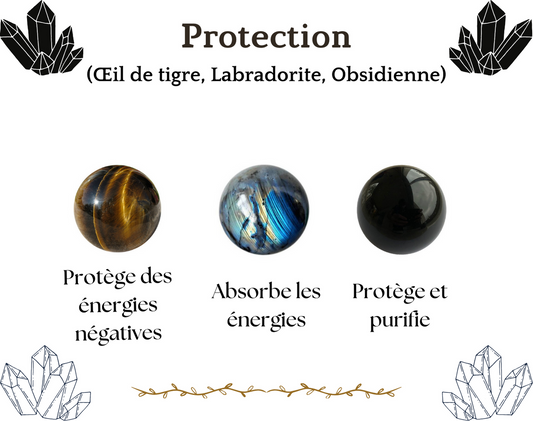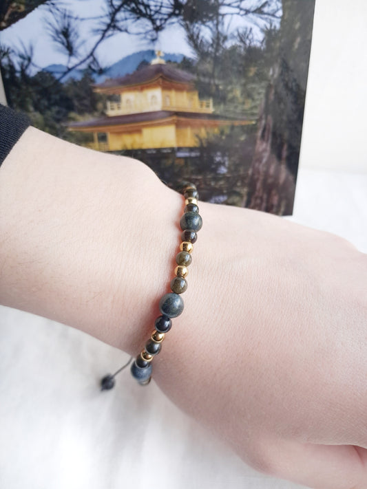 Bracelet lithothérapie "Protection" en œil de tigre, Labradorite et Obsidienne