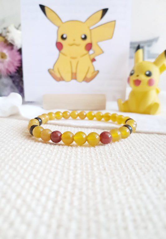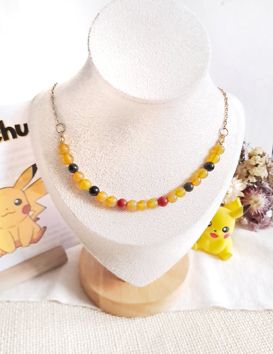 Collier Pikachu en acier inoxydable et pierres naturelles