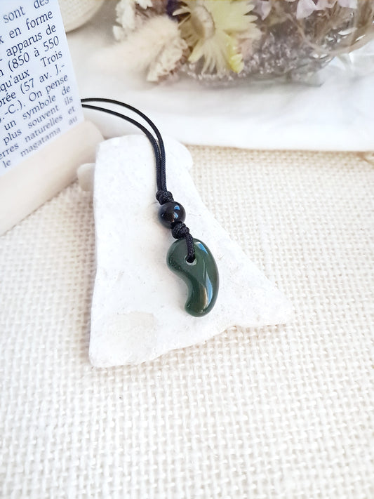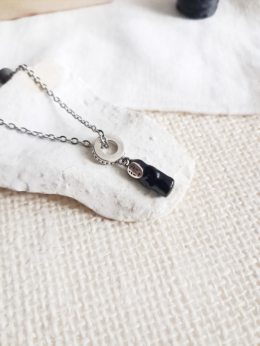 Collier Kaonashi (Sans-visage) en acier inoxydable, pierres naturelles et sa breloque en argent 925