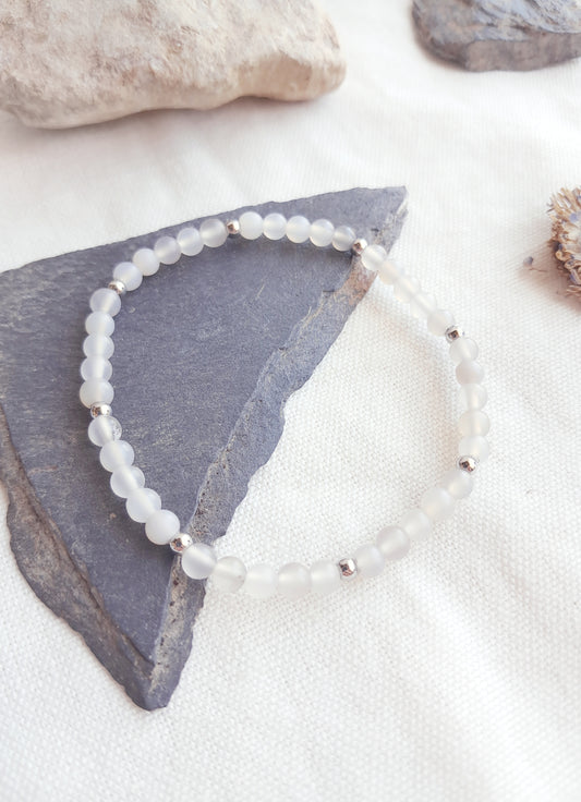 Bracelet en jade blanc 4mm et perles en acier inoydable