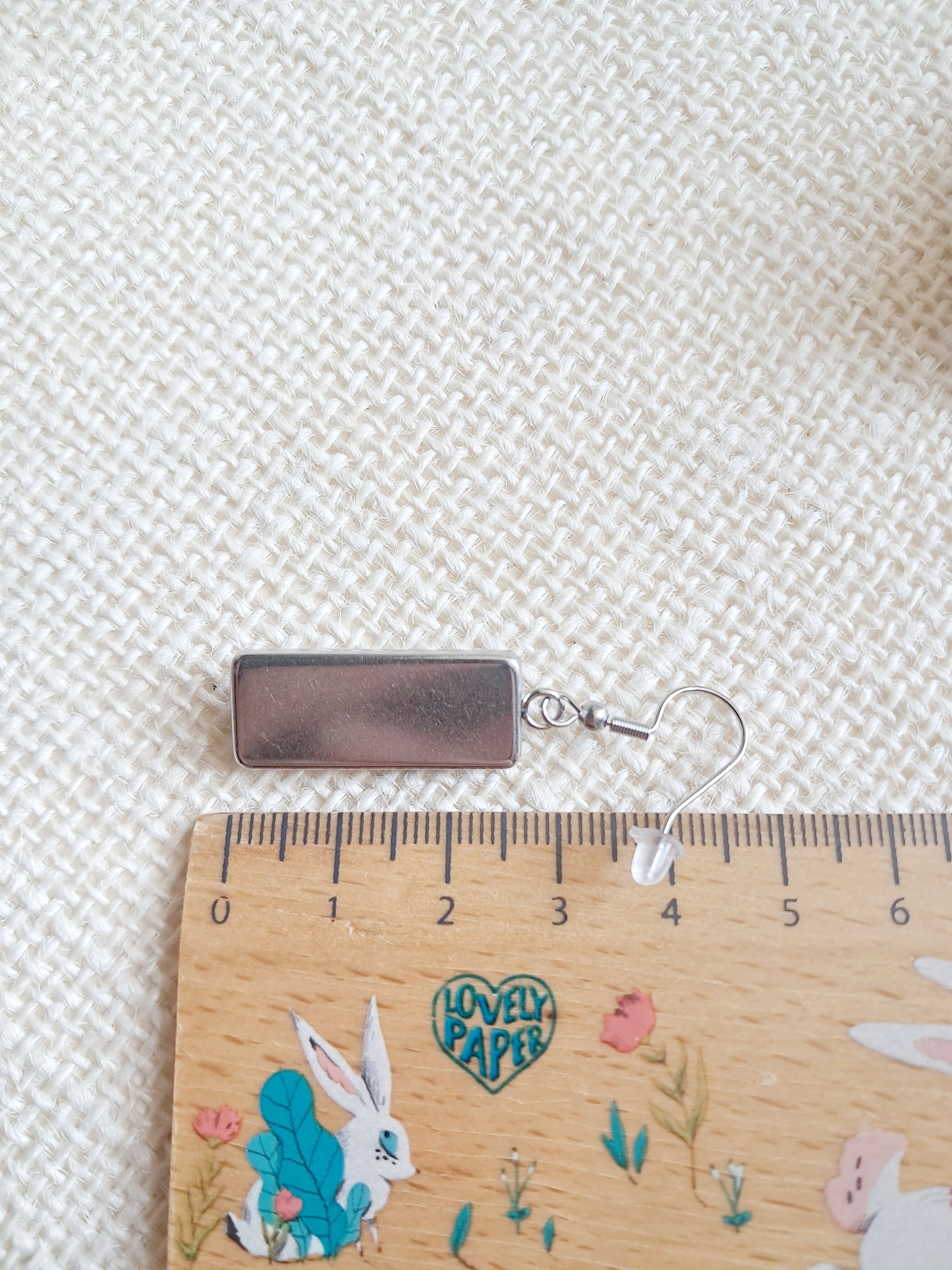 Les boucles d'oreilles mesurent environ 4,7cm de haut et ses crochets sont en acier inoxydable avec bouchons poussoirs en silicone.