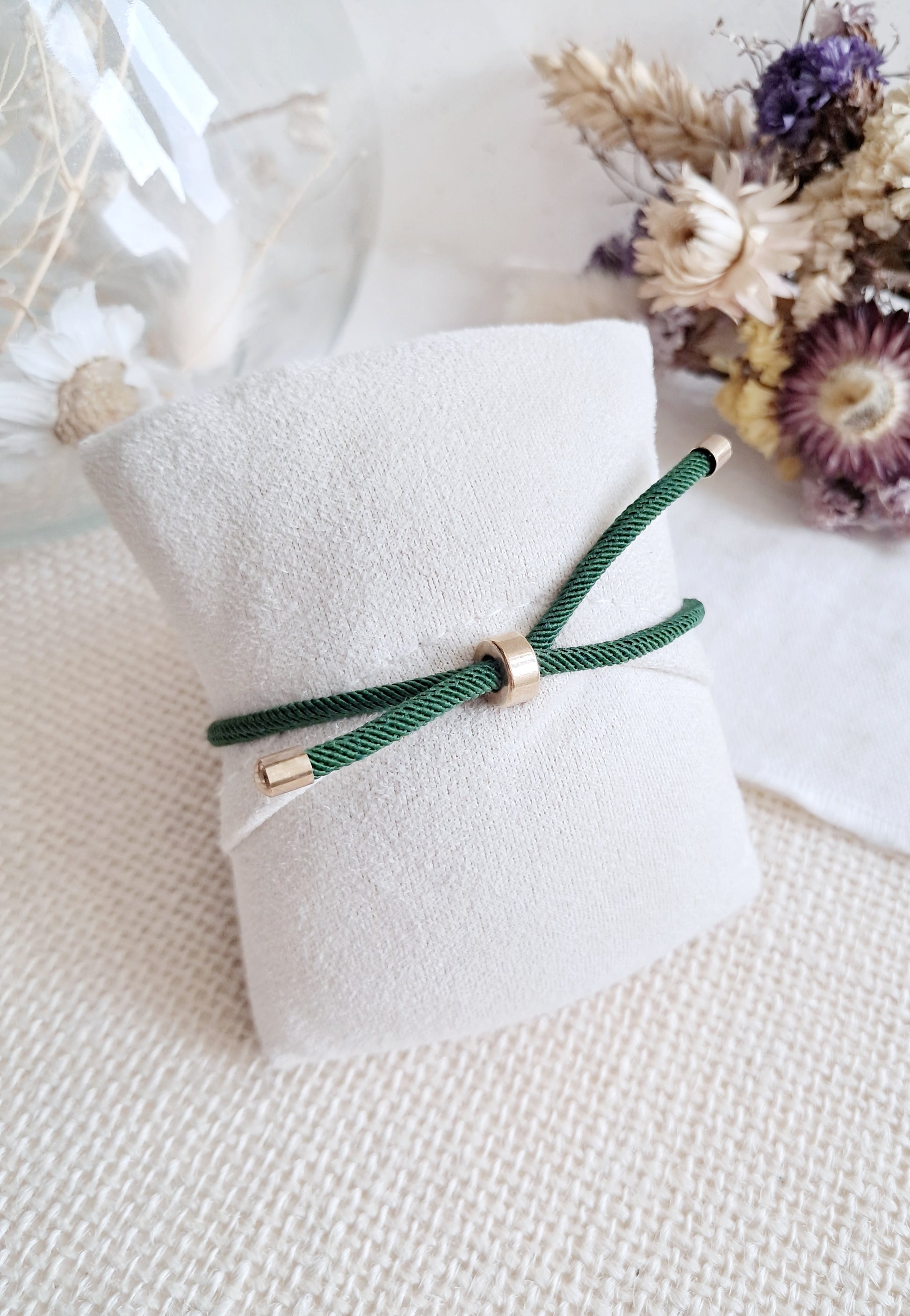 Ce bracelet se compose d'un médaillon du mont Fuji en laiton, monté sur un cordon en nylon vert, avec son nœud coulissant qui vous permet de l’ajuster parfaitement à votre poignet pour un confort optimal. Le médaillon de 2 cm est entièrement réalisé à la main. Il a été découpé à la scie dans une plaque de laiton avec des méthodes artisanales.