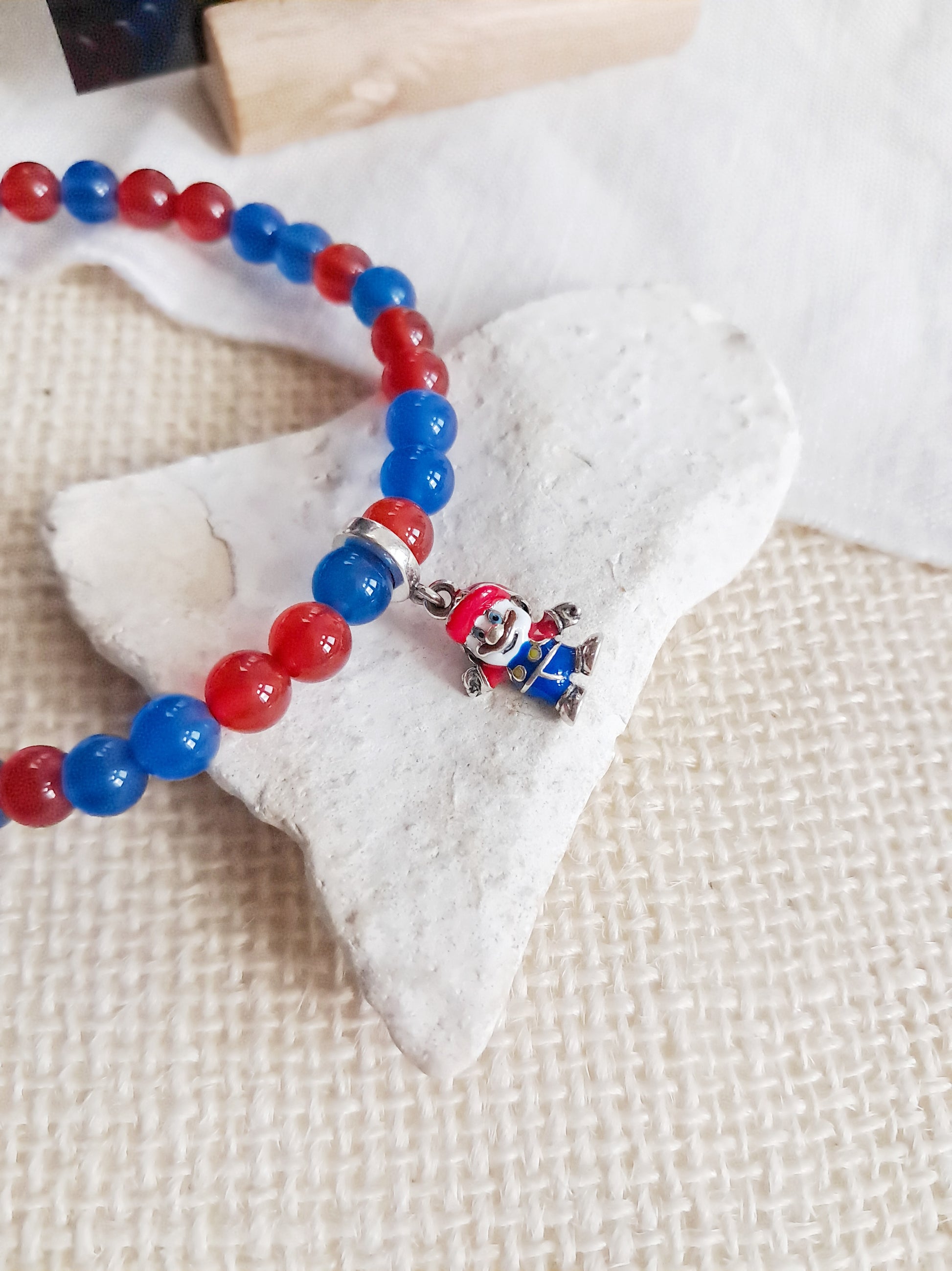 Mario, le plus célèbre des plombiers et personnage emblématique du célèbre jeu vidéo du même nom, nous a inspiré ce bracelet en agate de 6mm avec sa breloque en argent 925.