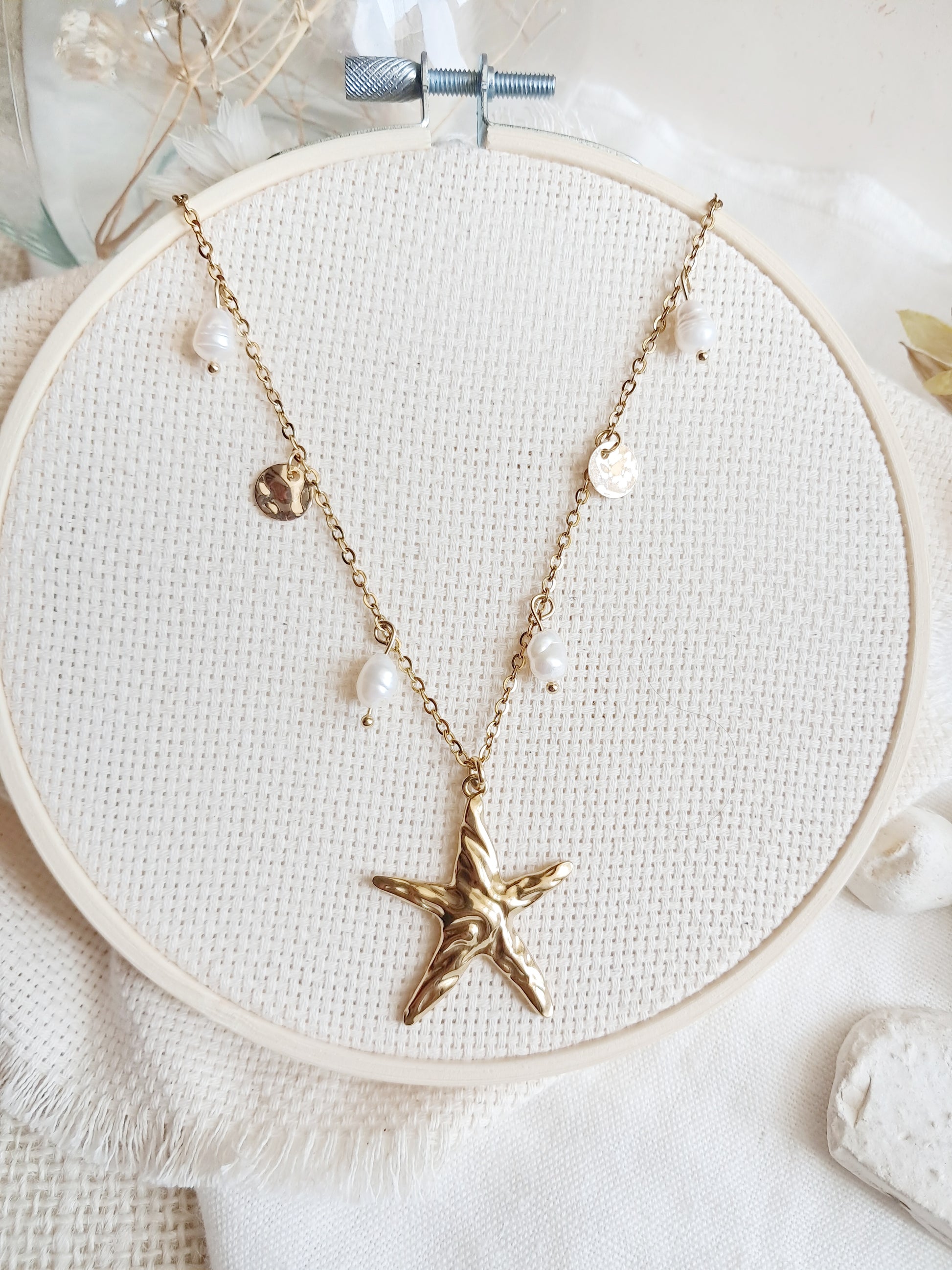 Collier étoile de mer et perles d'eau douce