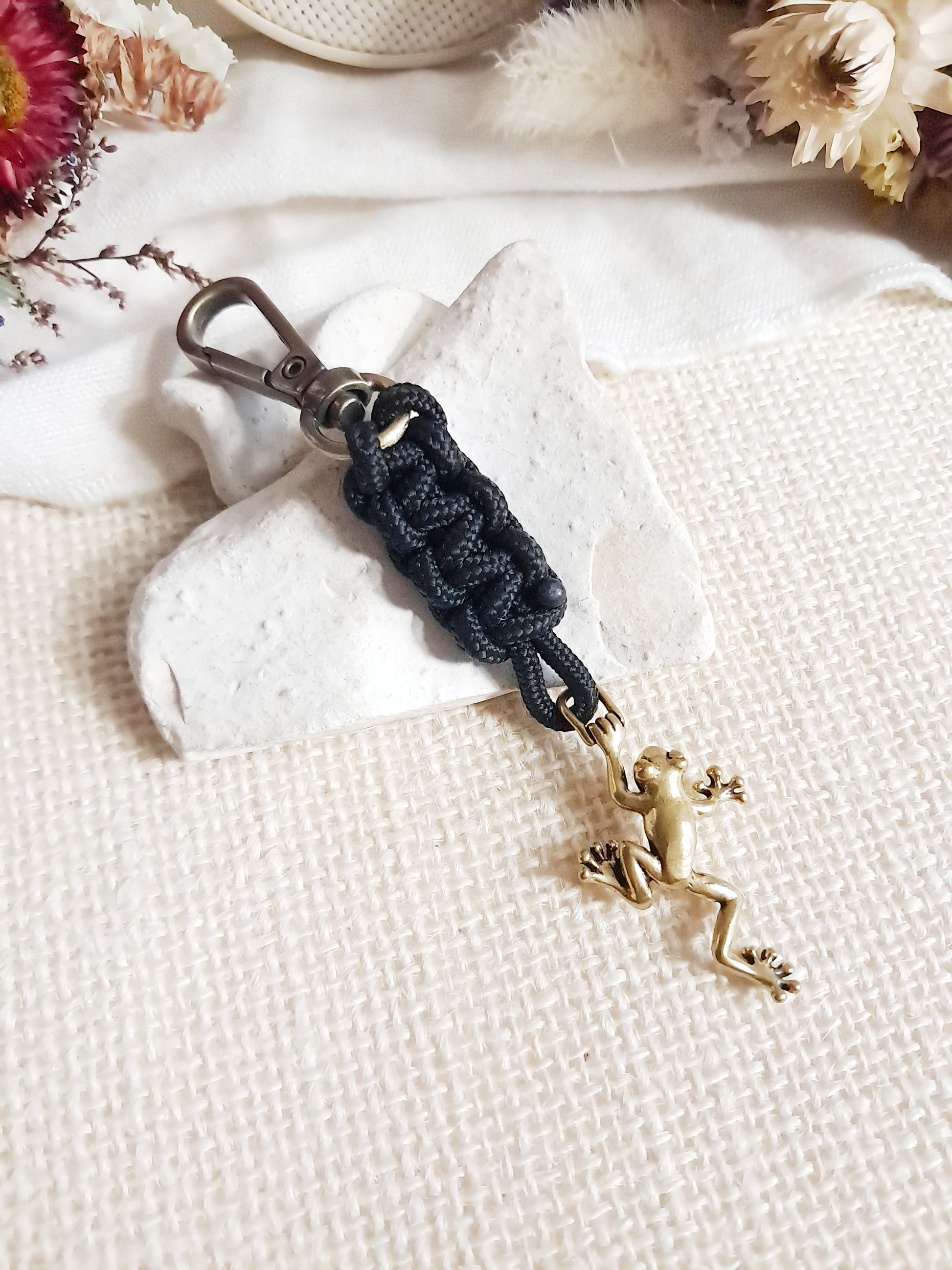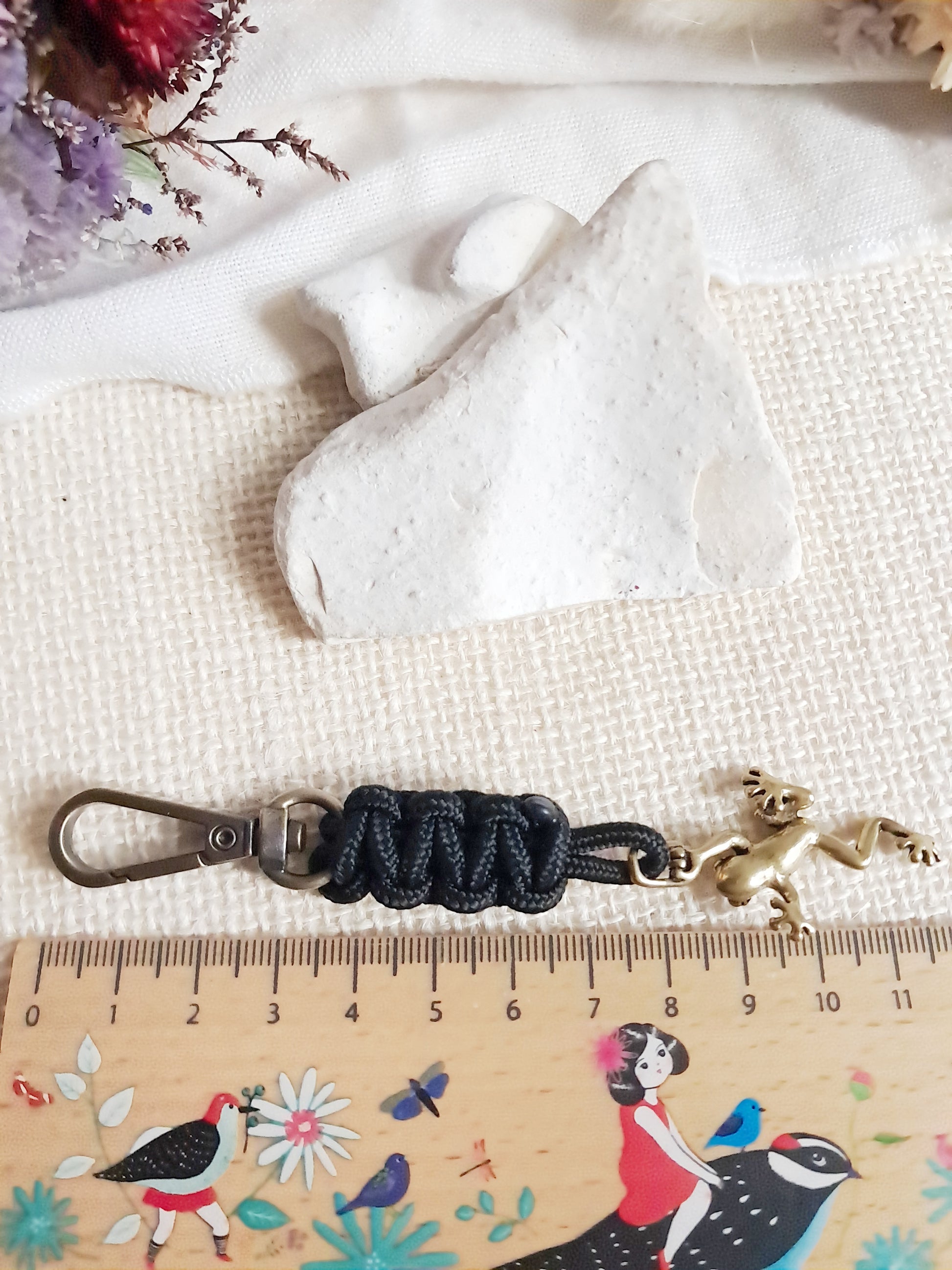 Ce porte-clés est fait d'une perle en laiton avec un tissage en fil de paracorde. La perle est en forme de grenouille.