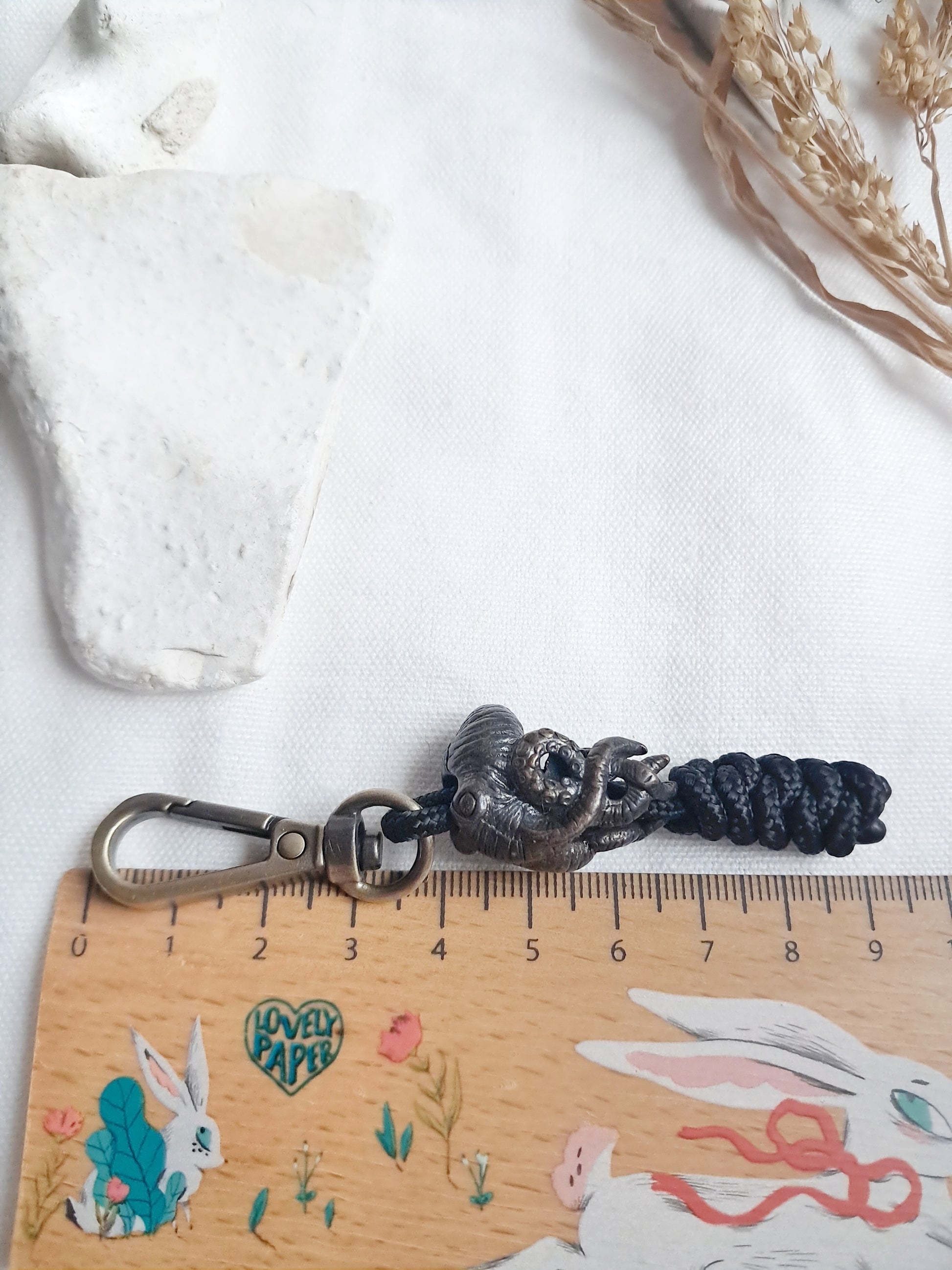 Ce porte-clés est fait d'une perle en laiton avec un tissage en fil de paracorde. La perle est en forme de pieuvre.