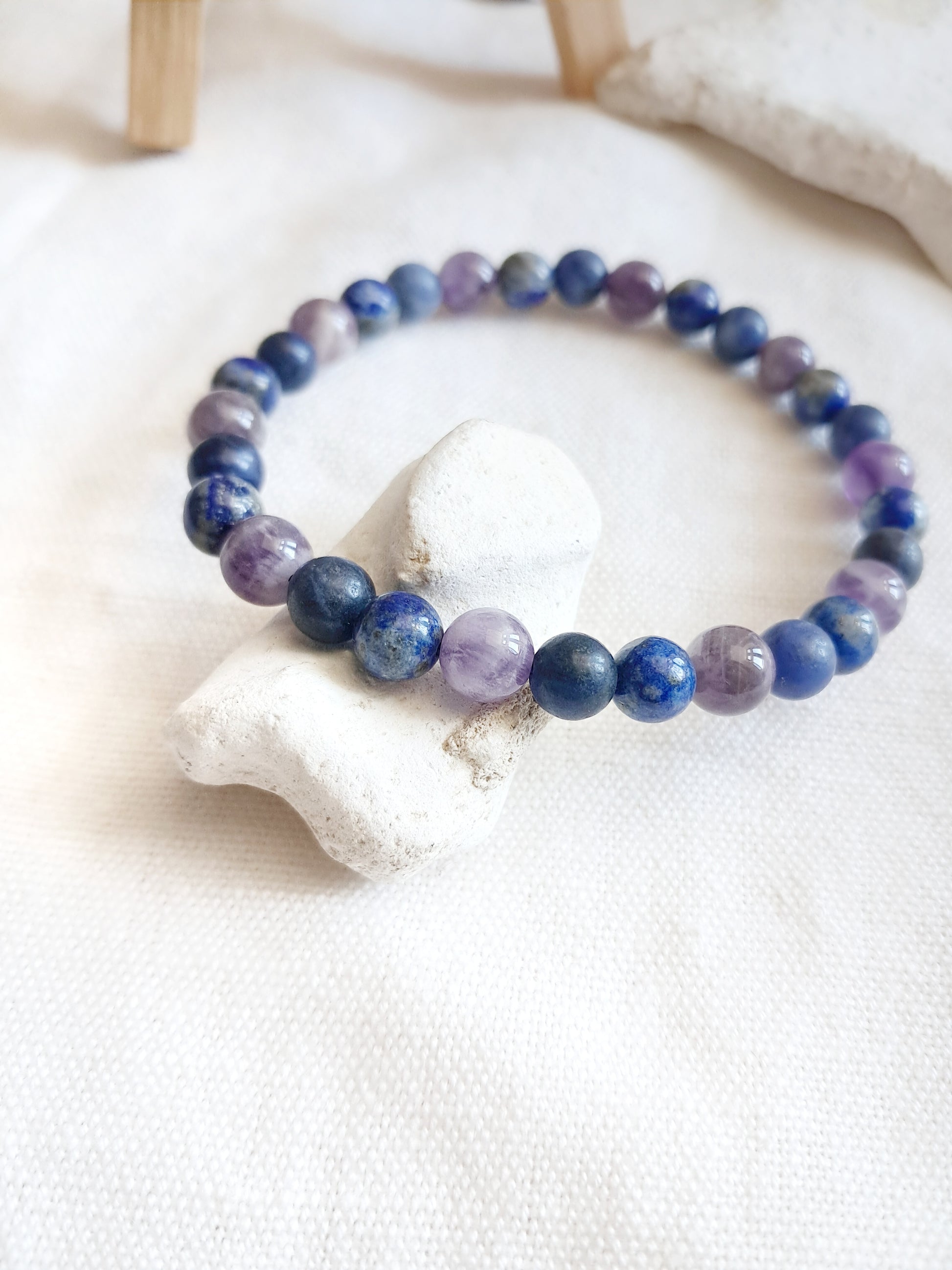 Bracelet lithothérapie "Confiance en soi" en améthyste, lapis-lazuli, sodalite