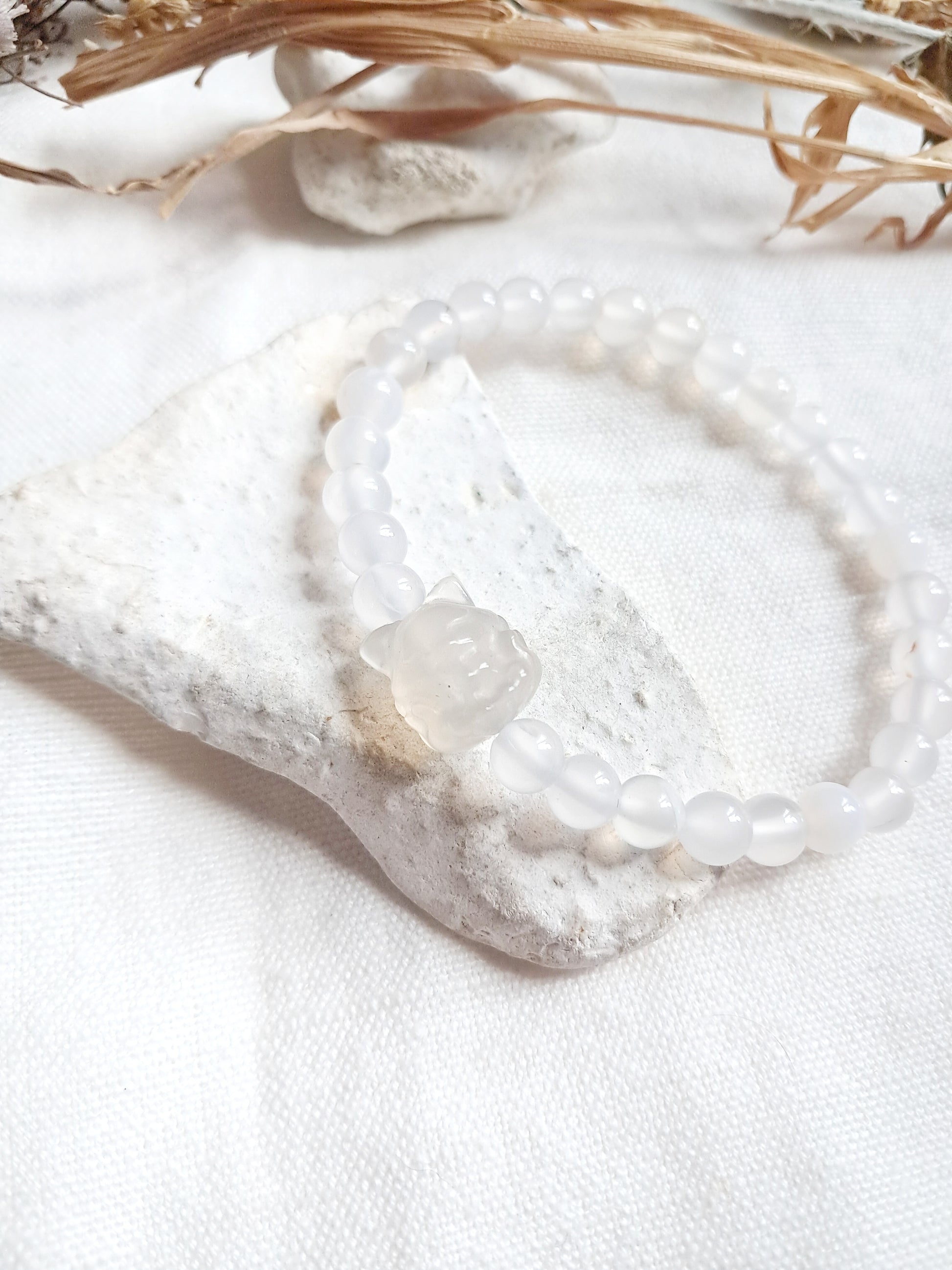 Bracelet renard à neuf queues en agate blanche