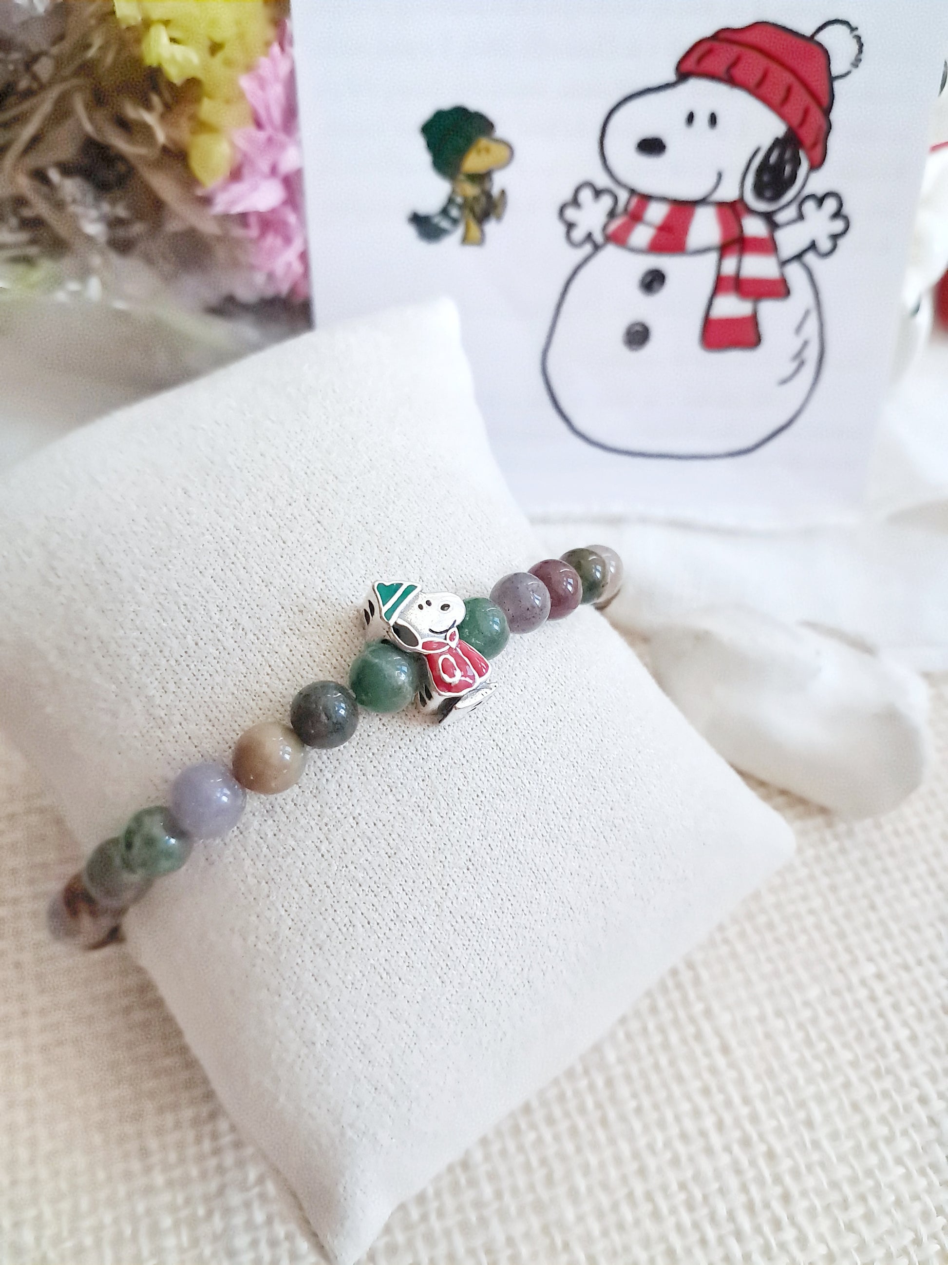 Inspiré de Snoopy, ce bracelet est fait de perles naturelles en agate indienne de 6mm avec sa breloque en argent 925.