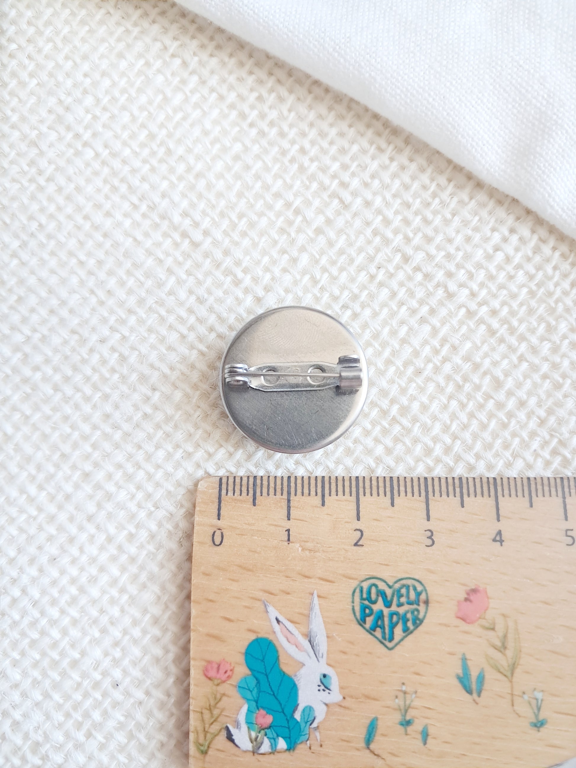 Cette broche cabochon est réalisé en acier inoxydable et en verre. L'image représente une l'estampe "La grande vague de Kanagawa" par Hokusai.