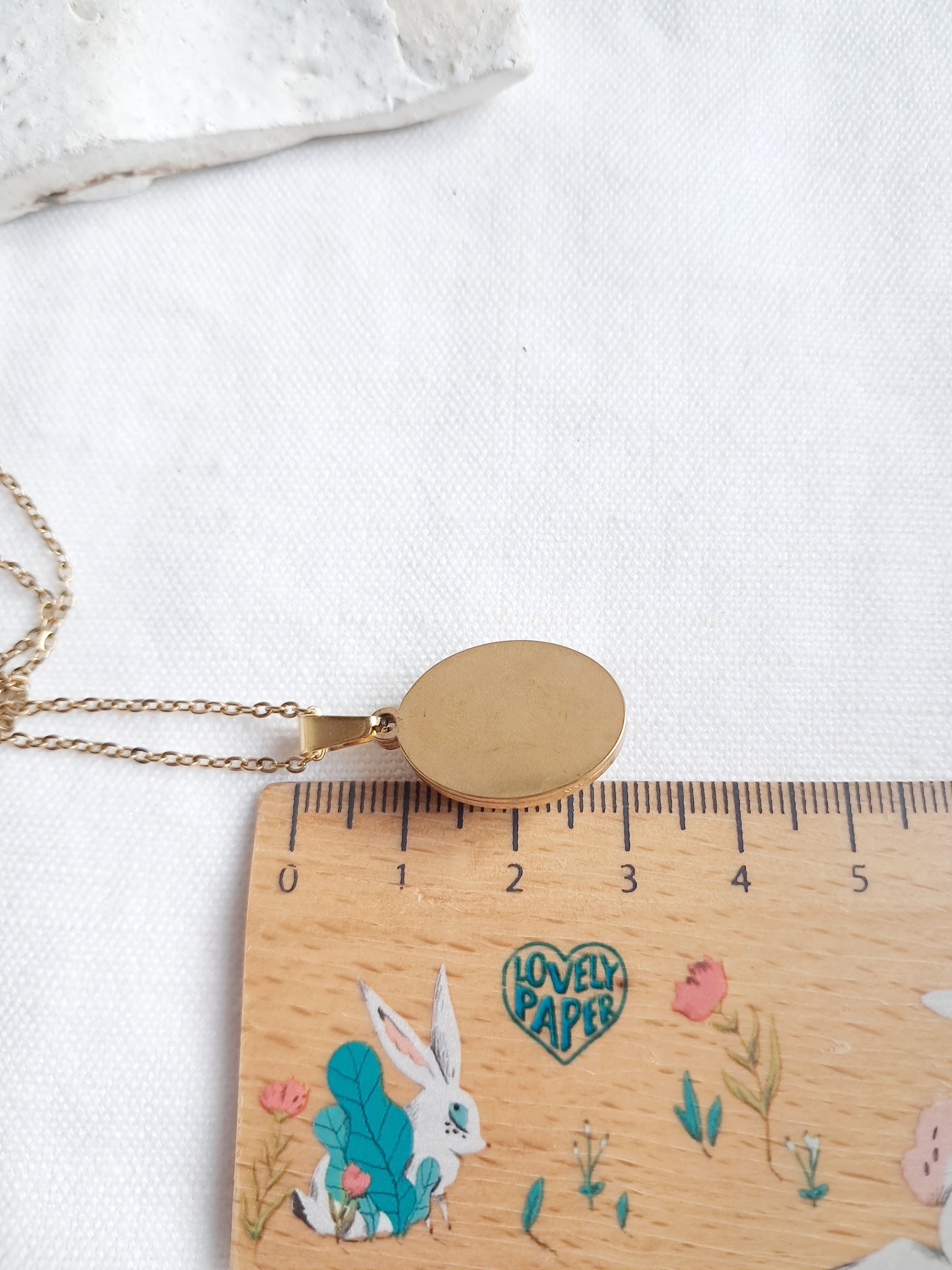 Le collier est vendu emballé dans sa pochette en coton et avec sa chaîne en acier inoxydable de 45cm.