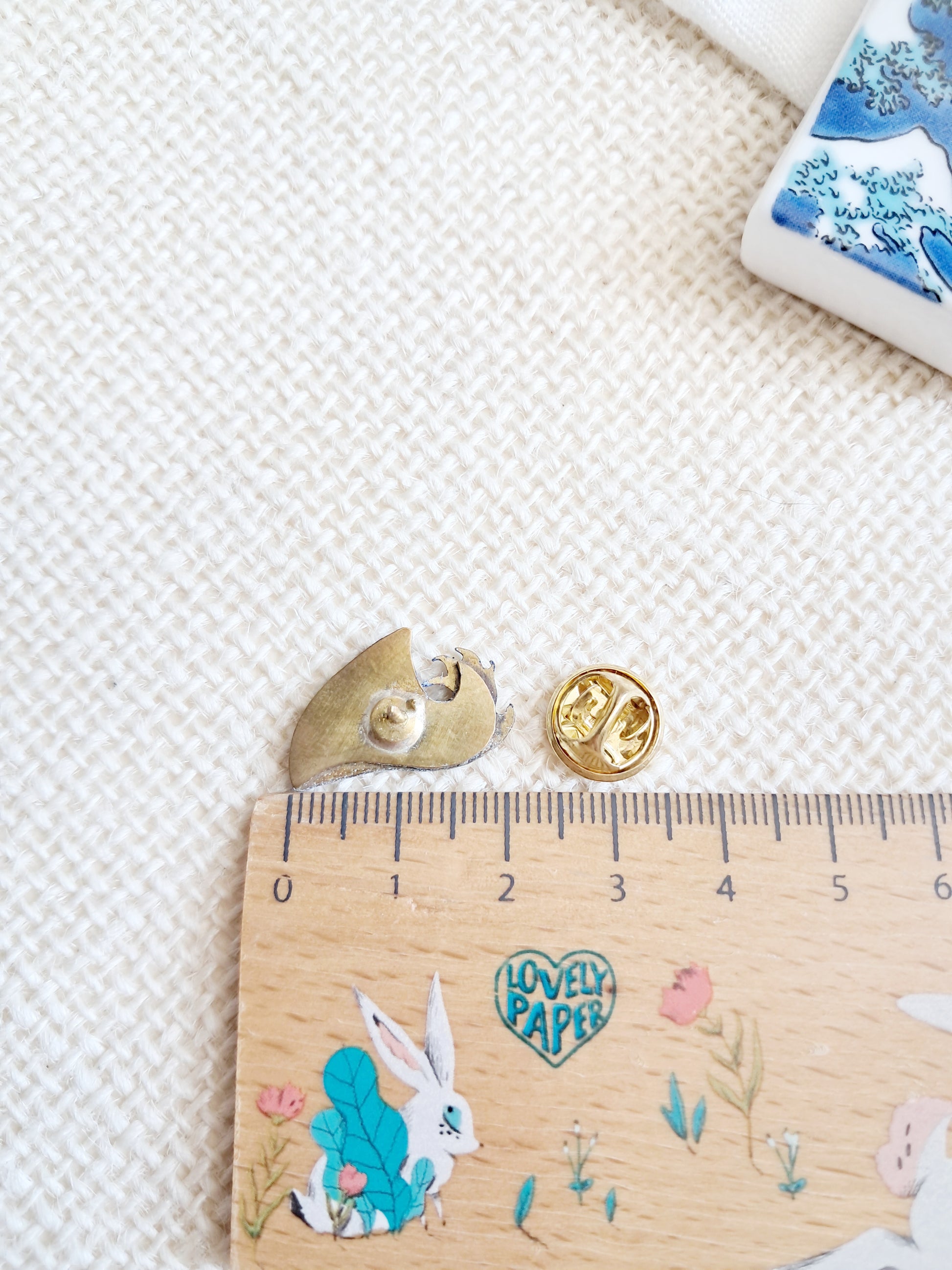 Ce pin's "La grande vague de Kanagawa" par Hokusai est réalisé entièrement à la main. Il a été découpé à la scie dans une plaque de laiton et émaillé à froid.