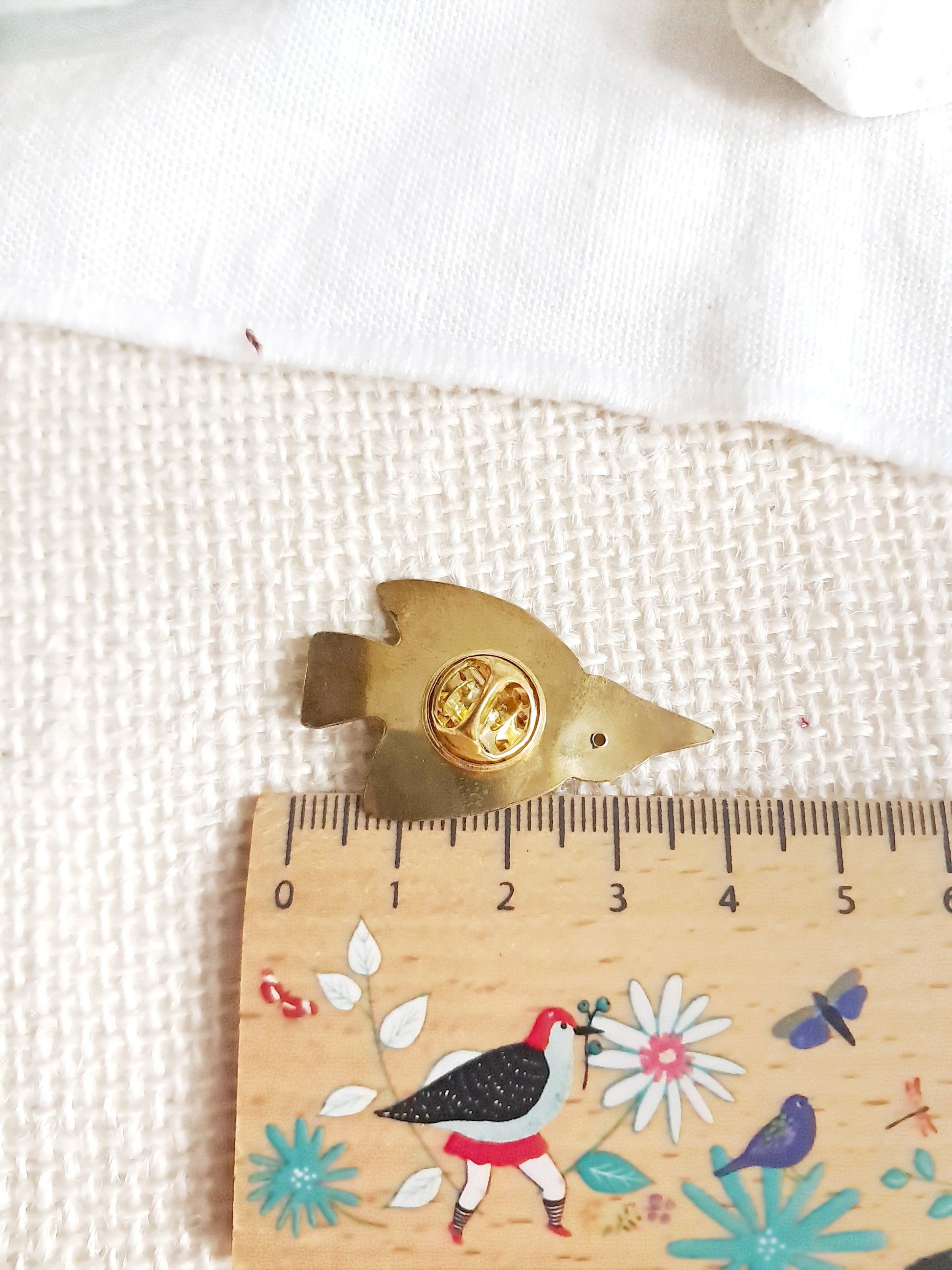 Ce pin's oiseau est réalisé entièrement à la main. Il a été découpé à la scie dans une plaque de laiton.
