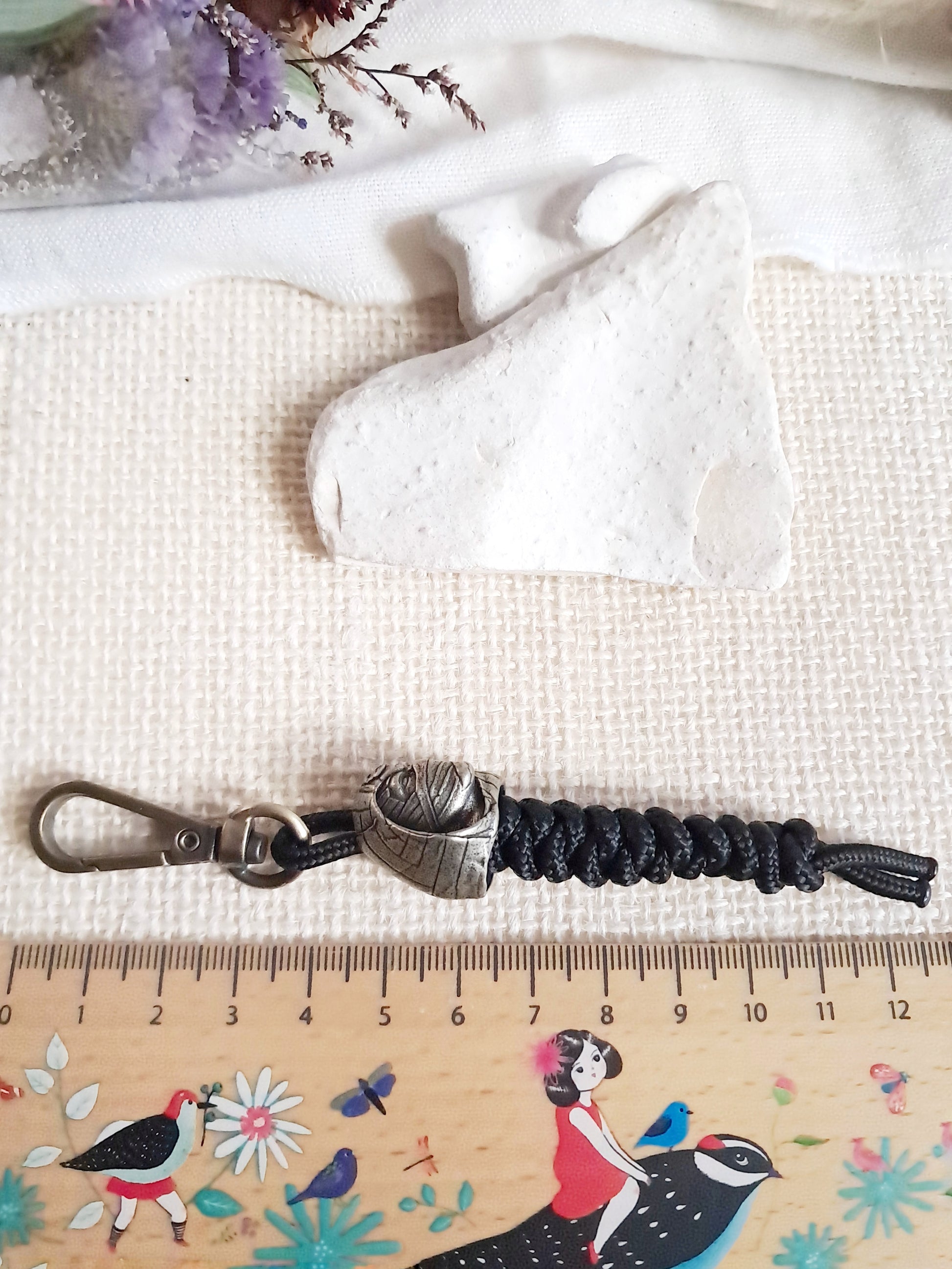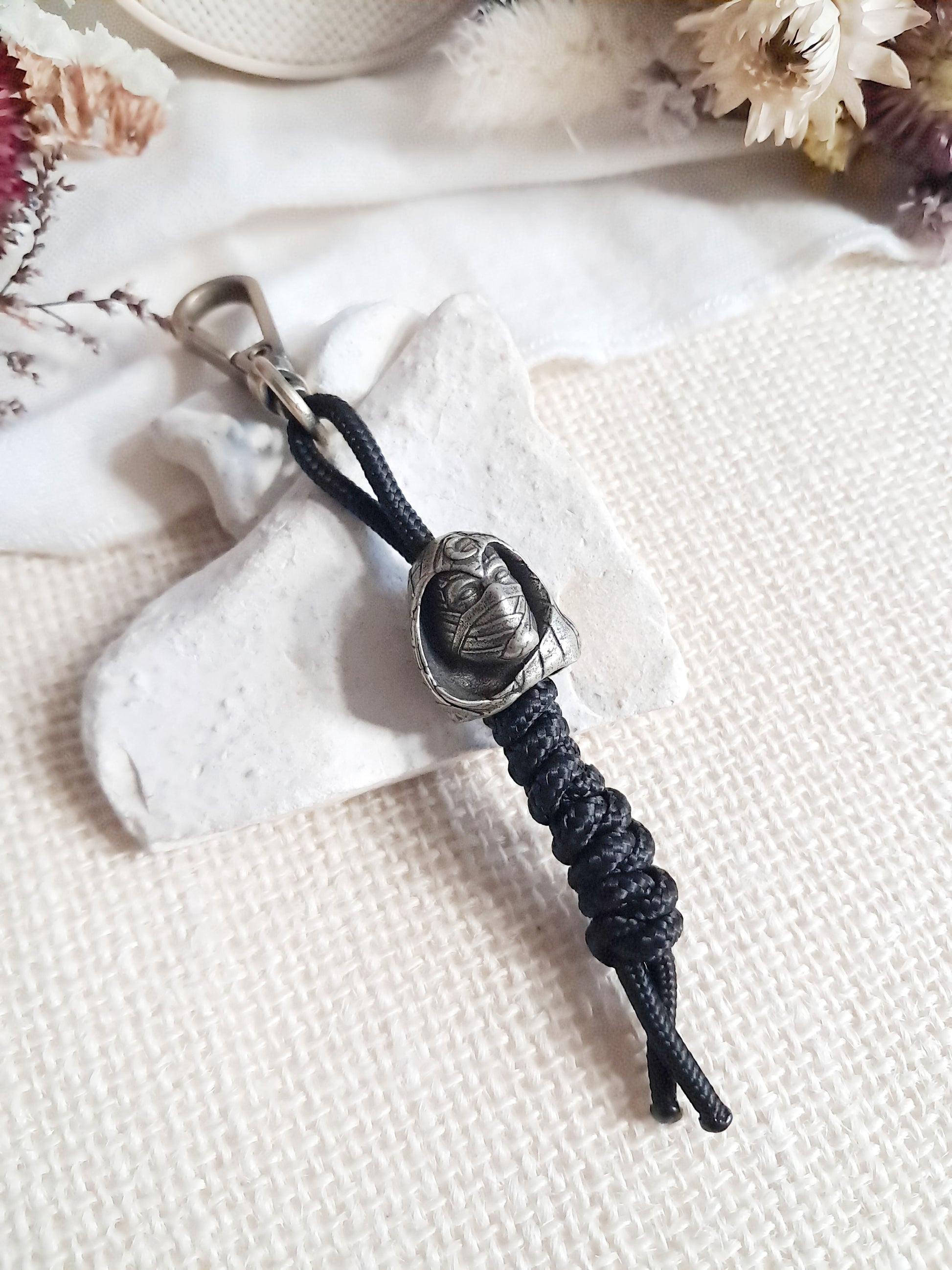 Ce porte-clés est fait d'une perle en laiton avec un tissage en fil de paracorde.