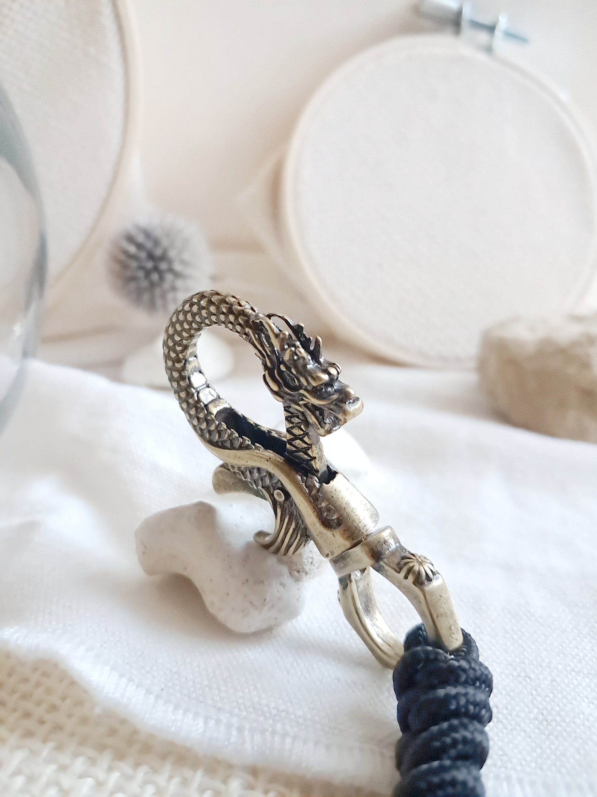 Porte-clés mousqueton dragon en laiton
