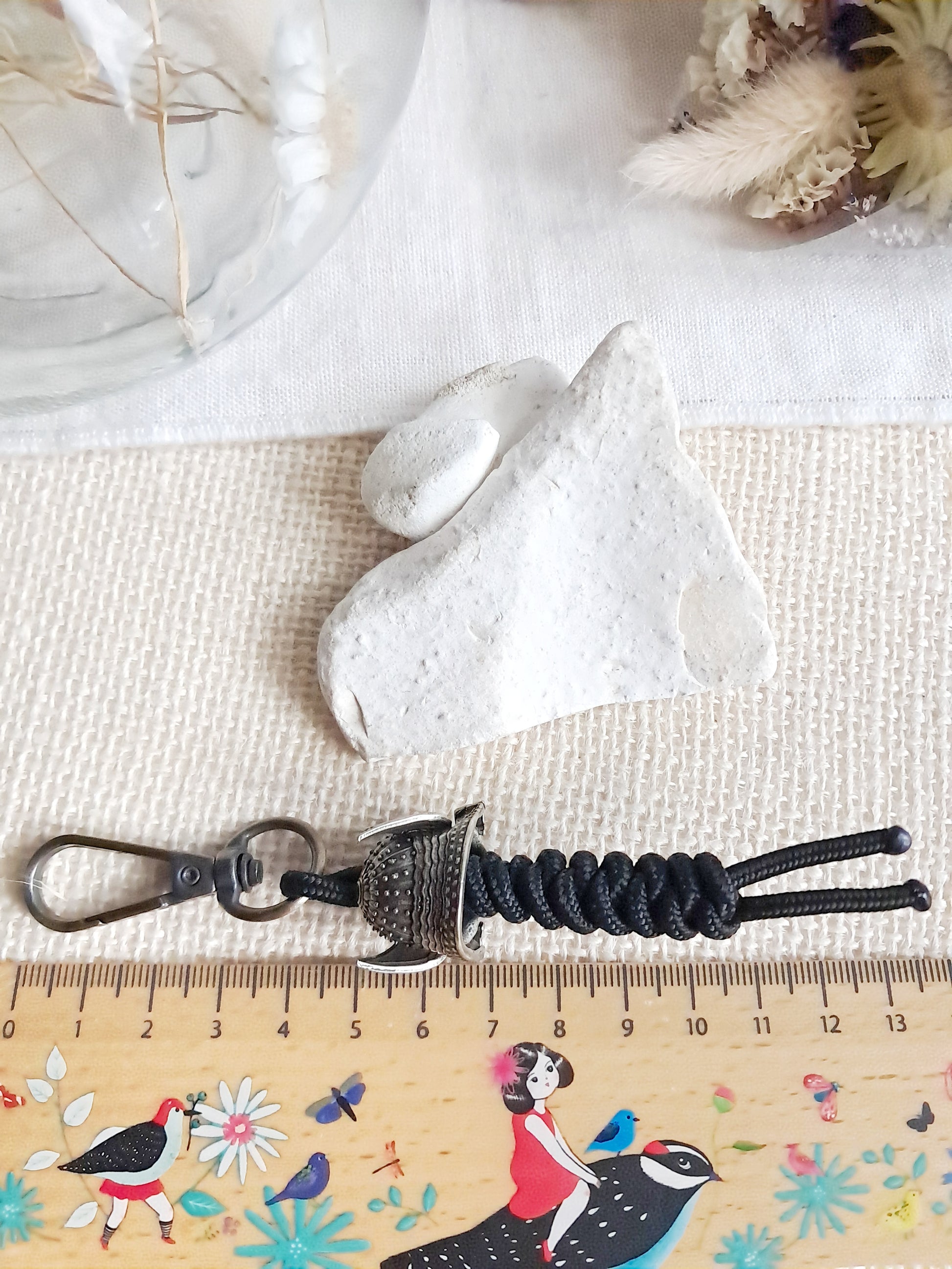 Ce porte-clés samouraï est fait avec une perle en laiton et un tissage en fil de paracorde.