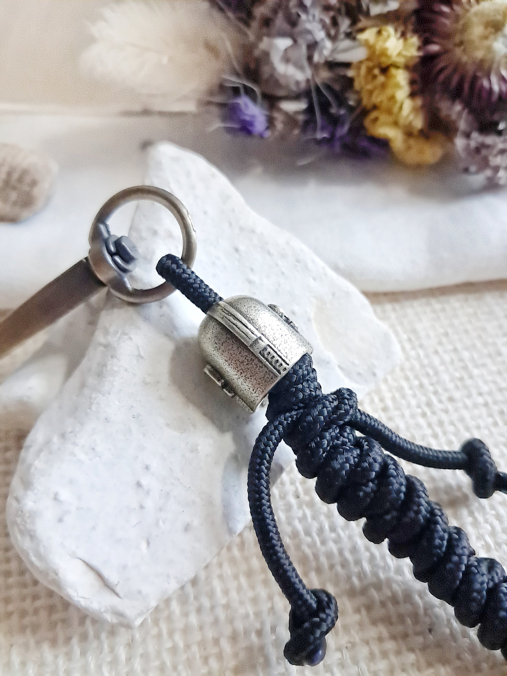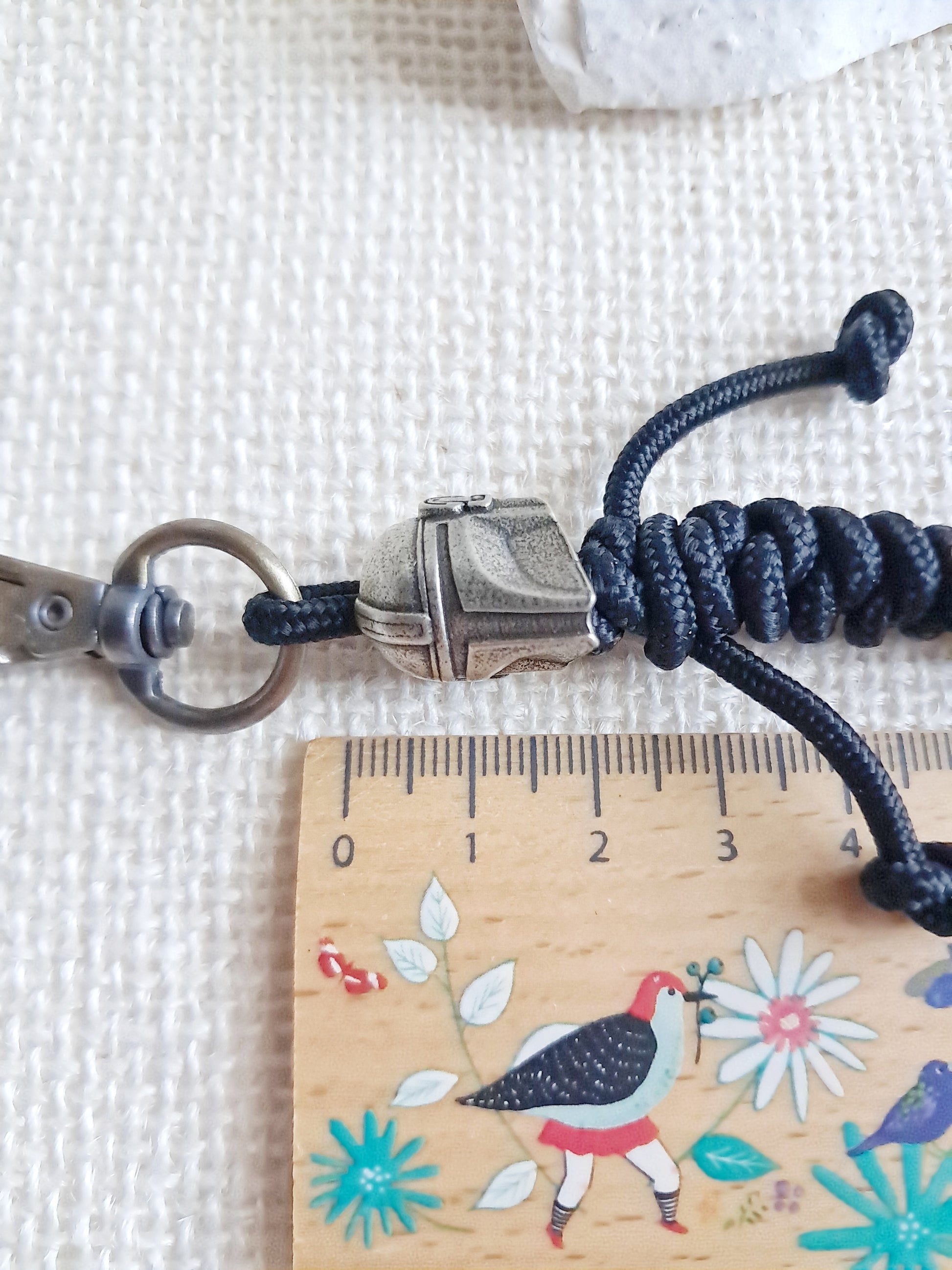 Ce porte-clés est fait d'une perle en laiton avec un tissage en fil de paracorde.