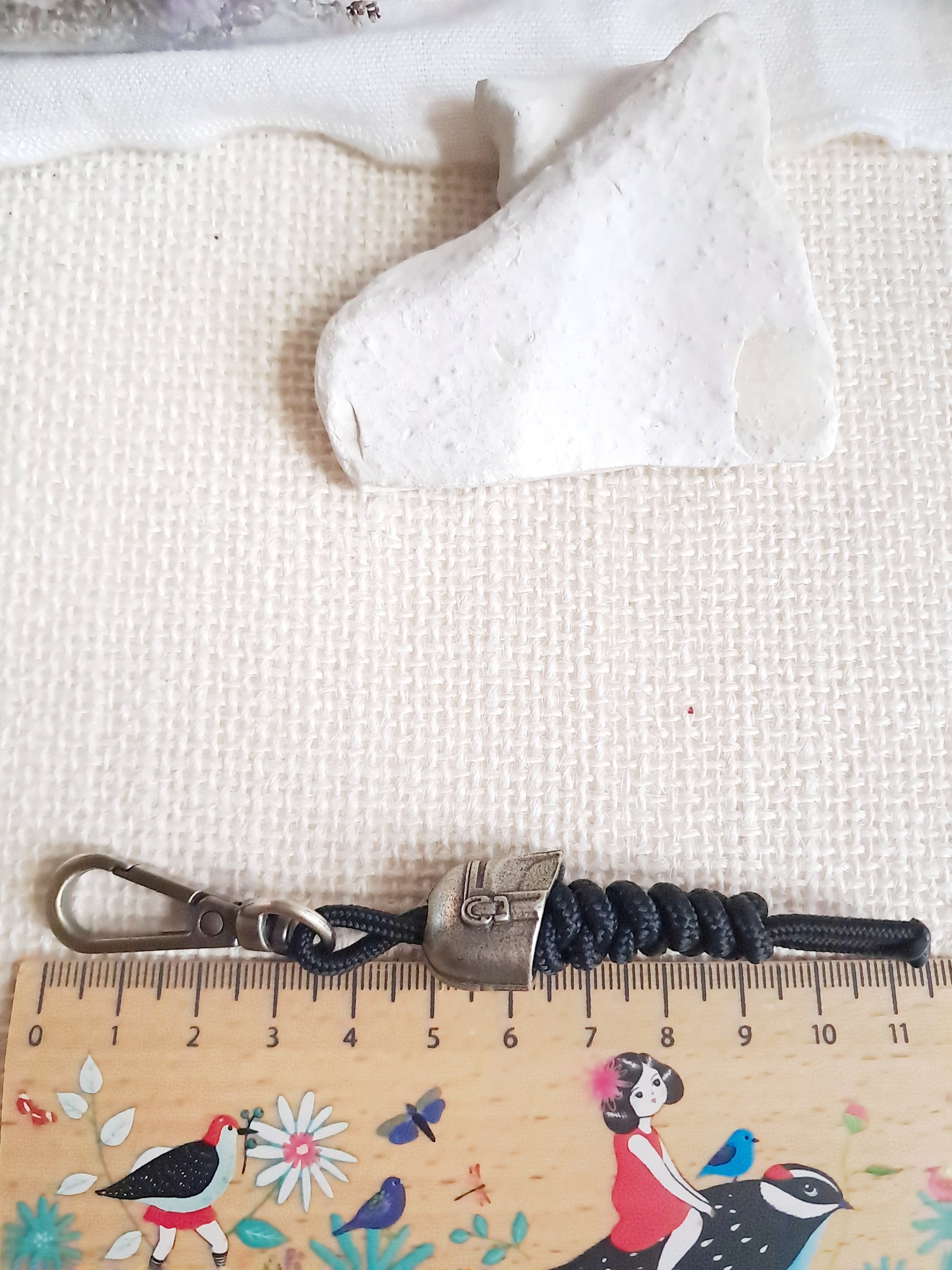 Ce porte-clés est fait d'une perle en laiton avec un tissage en fil de paracorde.