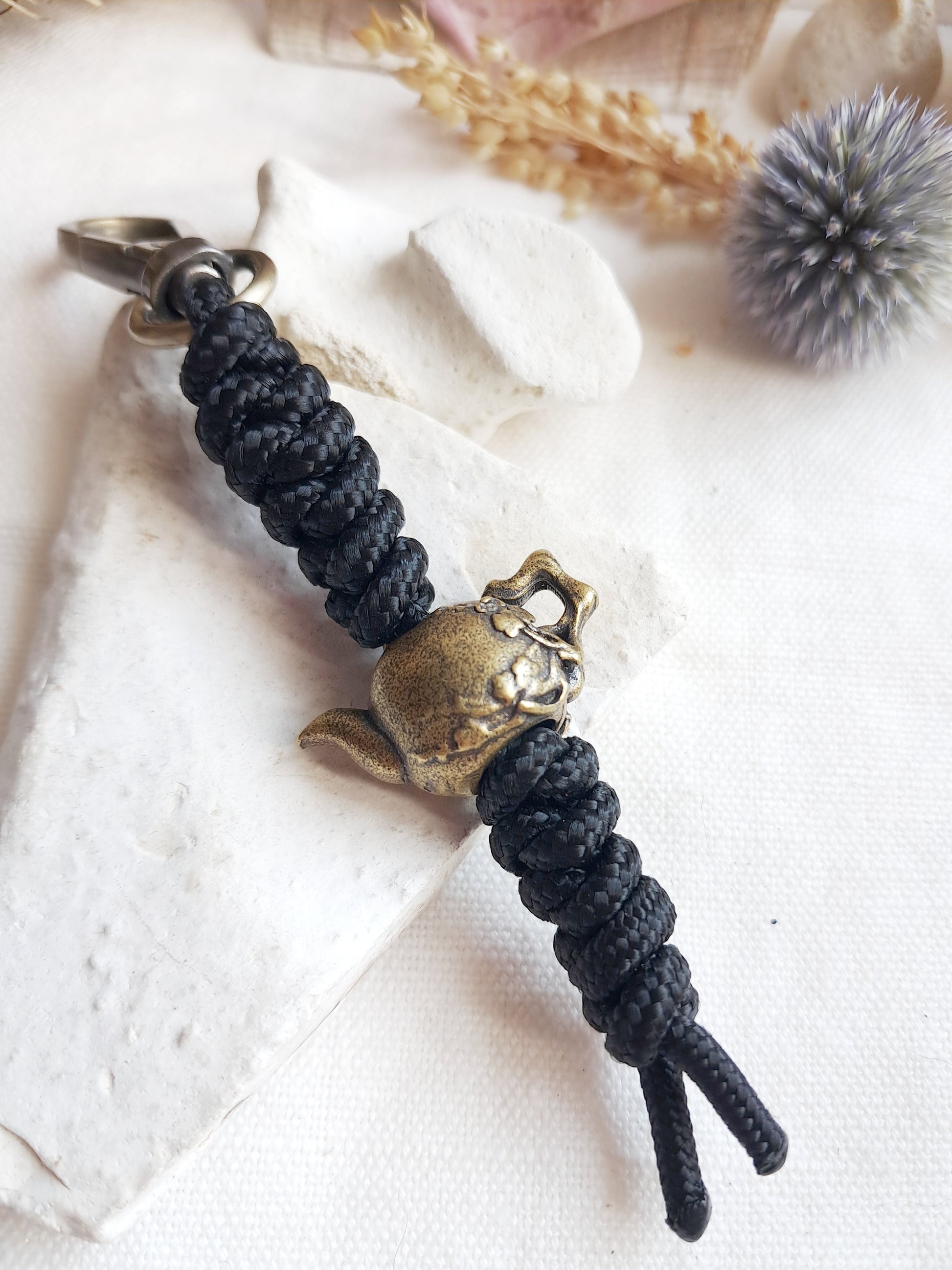 Ce porte-clés est fait d'une perle en laiton avec un tissage en fil de paracorde.